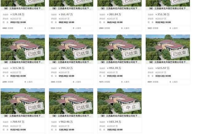 此次拍卖,已经不是这个园林绿化苗木基地第一次拍卖了,而是第十次拍卖了,前面九次拍卖,均是没有人报名竞拍而流拍。其中第一次拍卖的时候,起拍价还是高达962.42万元的,而资产评估价也是高达1203万元。